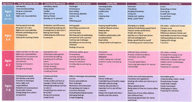 These themes will be explored with each class throughout the school year but specific teaching of this curriculum takes place during the Autumn Term. Children will learn to name their feelings, recognise their Early Warning Signs, develop a Personal Network of people who they trust and feel able to talk to. They will discuss body privacy and in order to do this we need to use language which is not misunderstood.  School staff will use agreed biologically correct terminology for naming body parts so everyone knows what is being talked about. Children will also discuss safe and unsafe secrets and begin to explore when it is important to tell someone in their Personal Network.