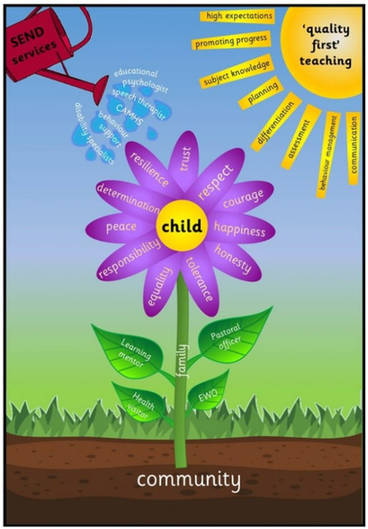 We believe that every child at our Academy is unique and special, so we aim to provide a broad and balanced curriculum for all. We are committed to developing cultures, policies and practices that are inclusive. Systems are in place to identify when children have barriers affecting their learning, followed by specific interventions to help children overcome these barriers. This practice of personalising learning applies to all children. For academically more able children this means provision of appropriate challenge to develop their particular talents. Where children are identified as needing additional support in any aspect, the academy follows the Code of Practice. This ensures that each child’s needs are individually and appropriately catered for, and that any outside agencies are involved in providing guidance and support. The key principles of the code of practice are:
