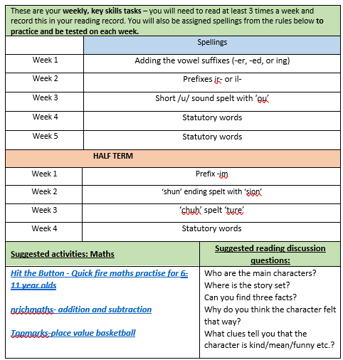 Below is our Year 3 Spring Homework Grid which includes spellings for the term as well as extra pieces of homework that children can choose to complete at home across the term.